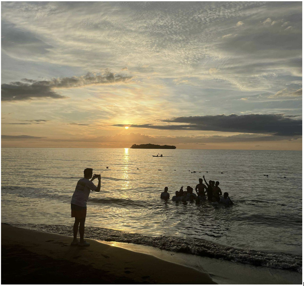 Eventually, we arrived at Candelaria after spending almost half the day travelling. We were greeted with a welcoming cultural performance by local high school students of Candelaria. At our accommodation, the waters of the West Philippine Sea stretched endlessly before our eyes, with the island of Potipot in the foreground. There, we spent the rest of the day swimming along the shore, participating in educational games, and bonding with fellow field-mates until we were able to witness the majestic sunset view that Candelaria, as well as the entire west coast of Zambales, is known for.